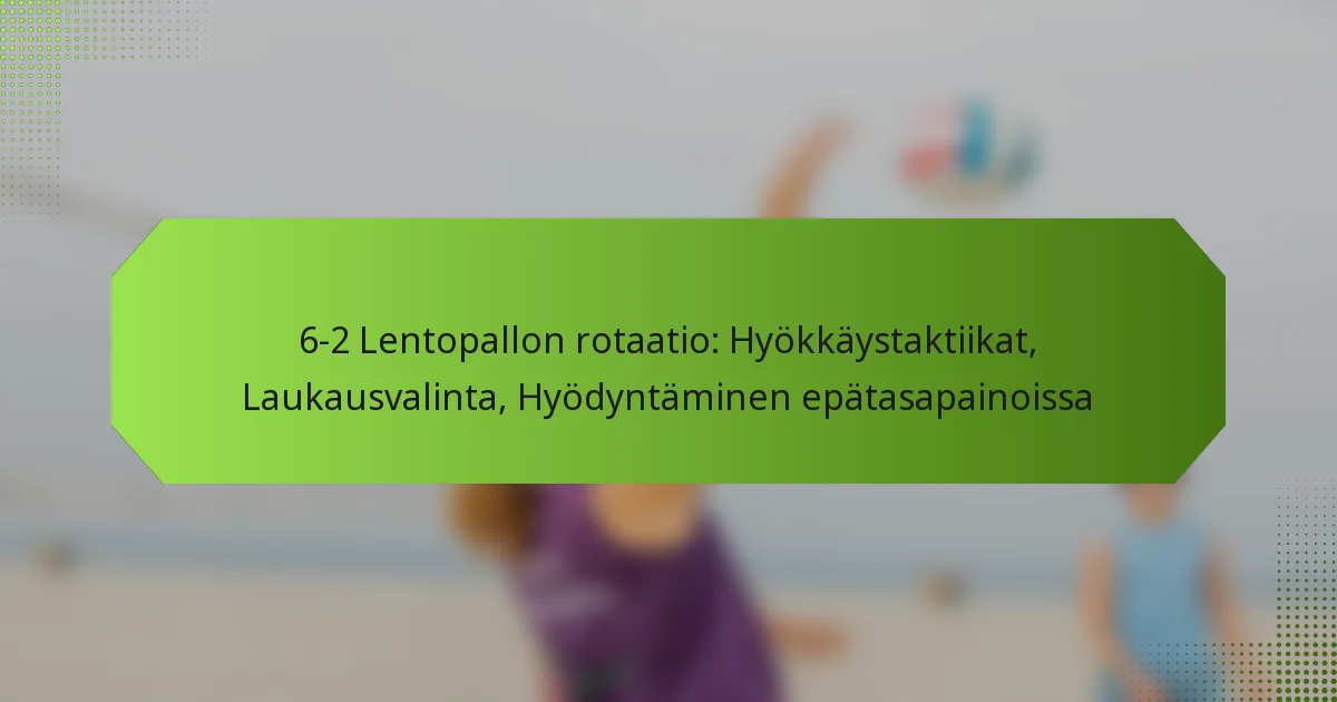 Vääristymien hyödyntäminen 6-2 lentopallokierrossa tarkoittaa heikompien puolustajien nopeaa tunnistamista ja kohdistamista samalla kun pelaajien sijoituksia säädetään hyökkäyskyvyn maksimoimiseksi. Analysoimalla vastustajan vahvuuksia ja heikkouksia joukkueet voivat luoda edullisia tilanteita, jotka johtavat onnistuneisiin hyökkäyksiin.