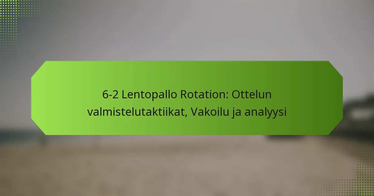 Valmistautuminen otteluihin käyttäen 6-2 kiertoa sisältää strategista suunnittelua, tehokkaita harjoituksia ja selkeää ymmärrystä joukkueen dynamiikasta. Tämä kierto mahdollistaa tasapainoisen hyökkäyksen ja puolustuksen, maksimoiden pelaajien vahvuudet samalla varmistaen tehokkaan viestinnän kentällä.