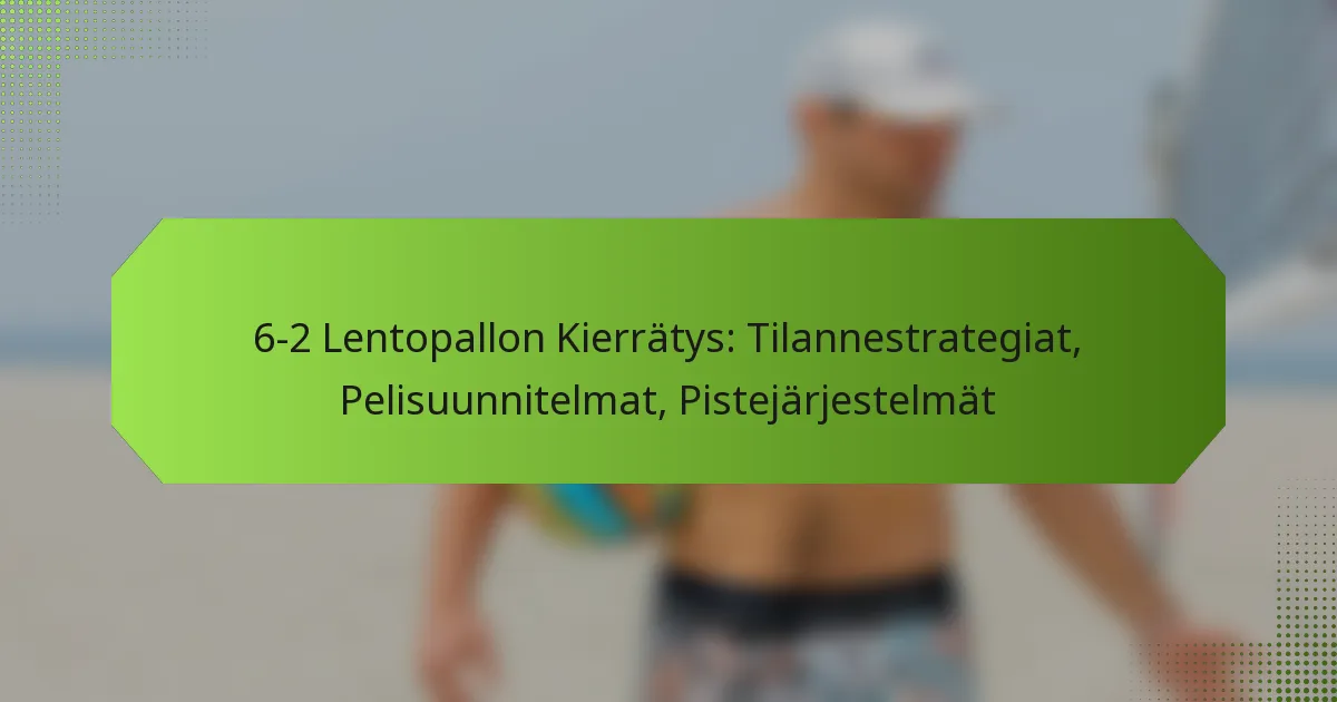 6-2 lentopallon kiertojärjestelmässä joukkueet hyödyntävät pisteytysjärjestelmää, jota kutsutaan rally scoringiksi, jossa piste myönnetään jokaisesta syötöstä riippumatta siitä, mikä joukkue syötti. Tämä järjestelmä parantaa pelin tempoa ja korostaa jokaisen rallin merkitystä, mikä tekee strategisesta pelaamisesta ratkaisevan tärkeää menestykselle.