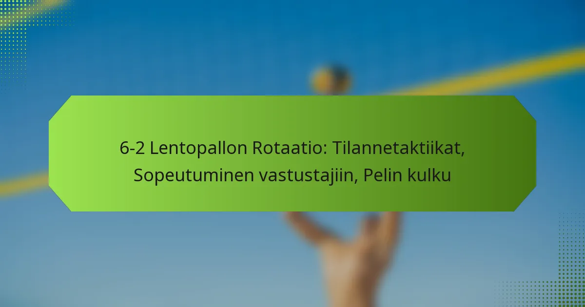 Tilannekohtaisten taktiikoiden toteuttaminen 6-2 lentopallon kierrossa tarkoittaa strategioiden säätämistä pelin tuloksen, vastustajien vahvuuksien ja pelaajien ainutlaatuisten kykyjen mukaan. Tehokas viestintä ja reaaliaikainen päätöksenteko ovat välttämättömiä pelin dynamiikan muuttuessa.