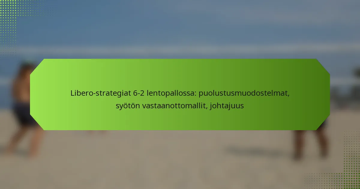 Edistyneet taktiikat liberolle 6-2 lentopallosysteemissä keskittyvät puolustavien muodostelmien optimointiin, syötön vastaanottomallien parantamiseen ja tehokkaan johtajuuden edistämiseen kentällä. Näiden strategioiden avulla libero voi merkittävästi parantaa suoritustaan ja myötävaikuttaa joukkueen kokonaismenestykseen.